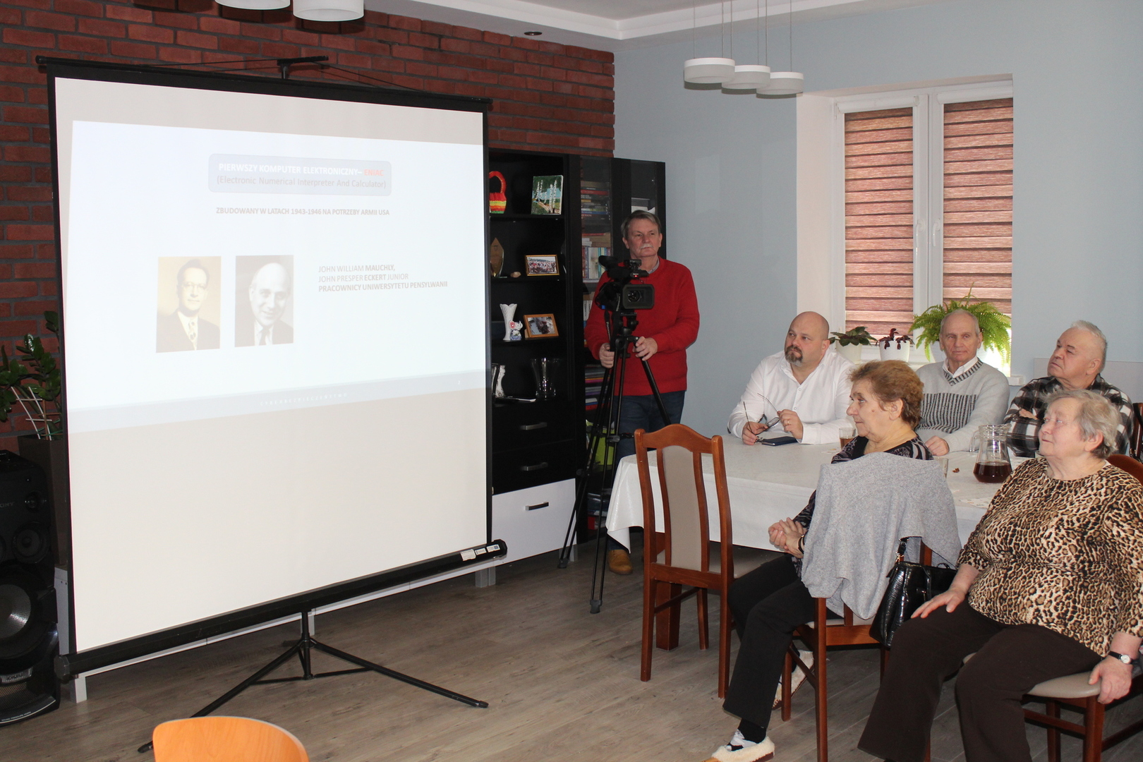 Z tego względu 8 lutego 2023 r. Dom Dziennego Pobytu Senior+ w Sompolnie odwiedził wyjątkowy gość- Pan Jarosław Rzymkowski. Seniorzy wysłuchali wykładu o cyberbezpieczeństwie. Nasz gość opowiedział nam w pierwszej części spotkania jak powstał komputer, jaka rolę odegrał polak Jan Czochralski – w świecie powstawania komputerów, kiedy nasz kraj uzyskał dostęp do internetu.