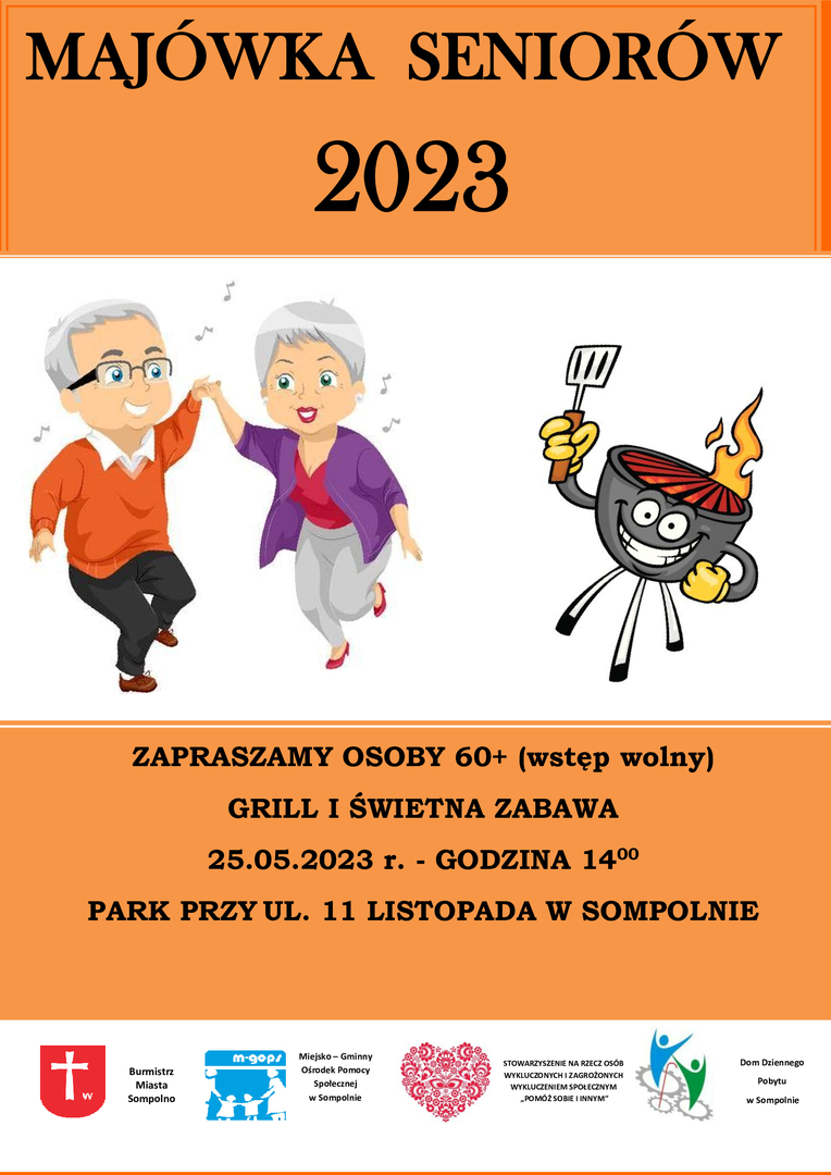 Aby stworzyć osobom starszym z naszego miasta i gminy choć namiastkę tamtego klimatu, Pan Roman Bednarek – Burmistrz Miasta Sompolna i M-GOPS w Sompolnie, pragną zaprosić osoby w wieku 60+ na Majówkę Seniorów! Odbędzie się ona 25 maja, w parku przy ul. 11 Listopada w Sompolnie. Rozpoczęcie imprezy od godziny 14:00. Wstęp wolny. Serdecznie zapraszamy!!!