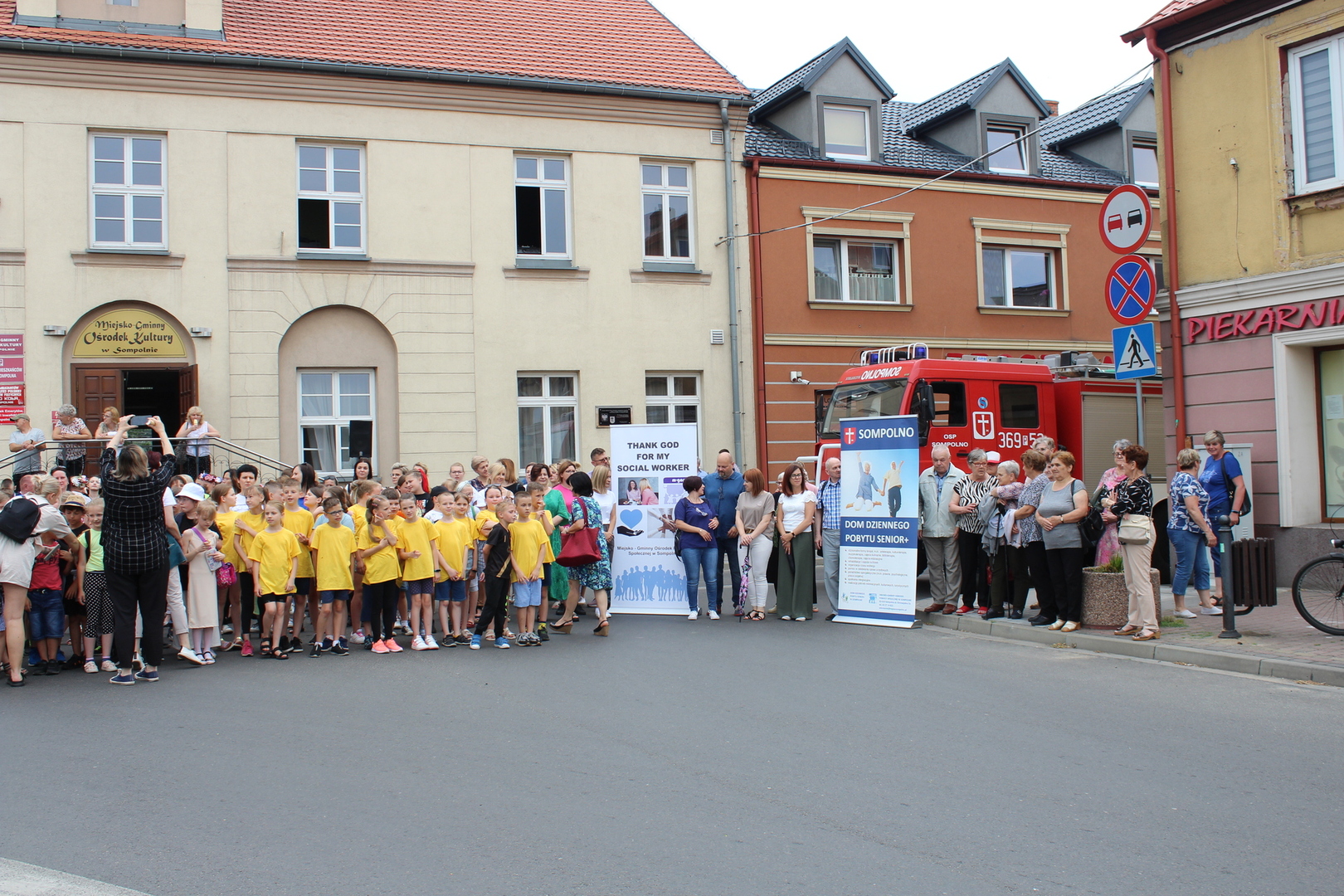 W roku 1973 dzięki staraniom mieszkańców, Sompolno odzyskało prawa miejskie. Aby upamiętnić 50’tą rocznicę tego wydarzenia, w dniu 21 czerwca, na Placu Wolności zebrał się tłum mieszkańców oraz wszystkie jednostki organizacyjne z Gminy Sompolno. Nie mogło tam zabraknąć także pracowników Miejsko – Gminnego Ośrodka Pomocy Społecznej w Sompolnie oraz uczestników Domu Dziennego Pobytu dla osób starszych w Sompolnie. Wszystko po to, aby wziąć udział w wydarzeniu zainicjowanym przez Pana Romana Bednarka - Burmistrza Miasta Sompolna oraz Miejsko – Gminny Ośrodek Kultury w Sompolnie. Na sompoleńskim rynku bowiem, nagrany został teledysk do piosenki pt.: „Urodziny mego miasta”, którą zaśpiewała Patrycja Kałużna. Będzie go można obejrzeć na telebimach podczas głównych obchodów 50-lecia odzyskania praw miejskich przez nasze miasto, które odbędą się 6 sierpnia 2023r.