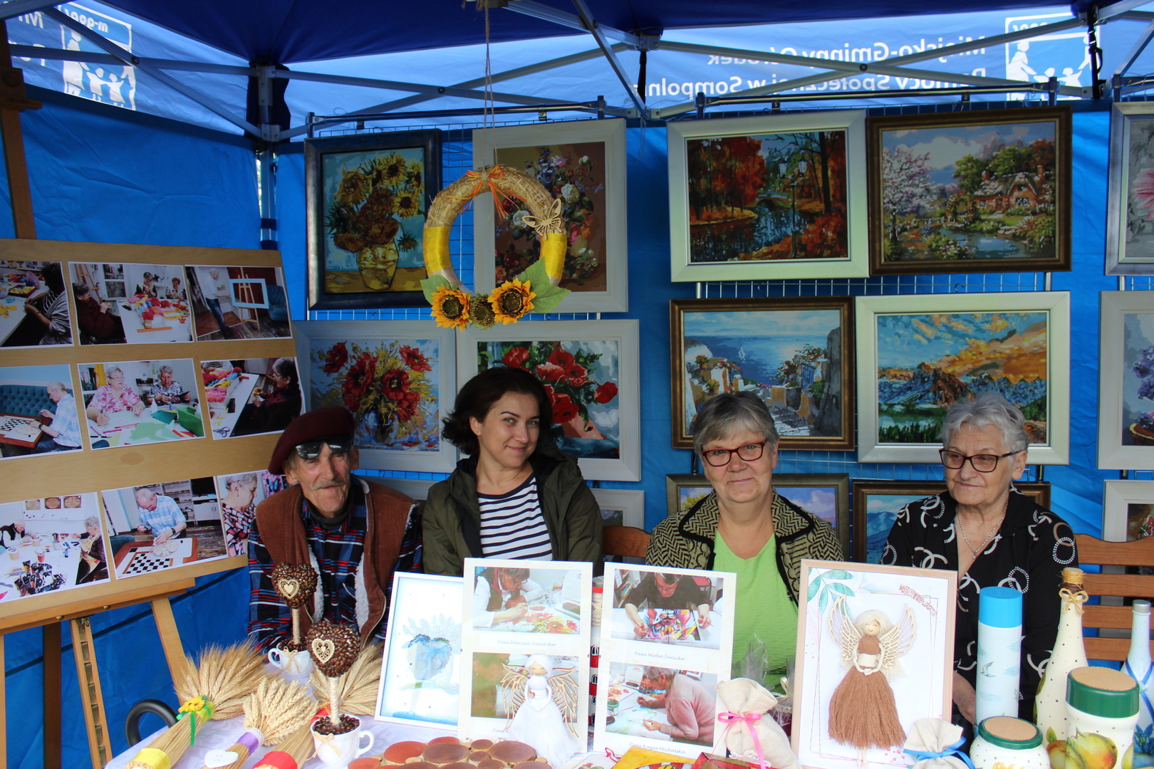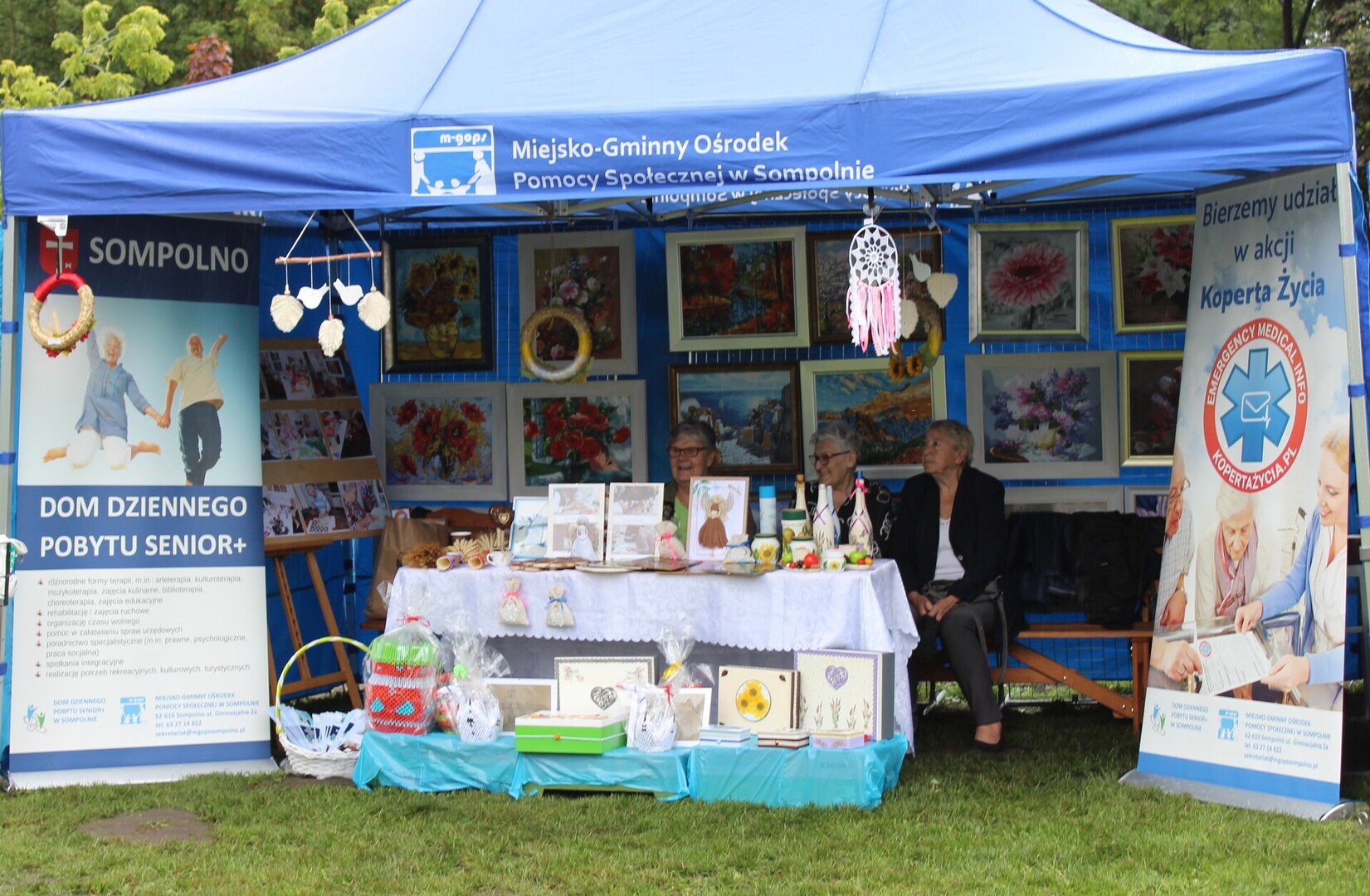 W dniu 6 sierpnia 2023 roku, Sompolno świętowało 50 Rocznicę Odzyskania Praw Miejskich. Jubileuszowa uroczystość, która odbyła się w parku przy ulicy 11 Listopada była świetną okazją do zaprezentowania rękodzieła seniorów z Domu Dziennego Pobytu. Nasze stoisko obfitowało w przeróżne prace: obrazy – które są naszą chlubą, przedmioty ozdobione metodą serwetkową, wianki, makramy i stroiki. Uczestnicy DDP przygotowali również w pracowni plastycznej ramkę okolicznościową, która została wykorzystana do zrobienia pięknych zdjęć.