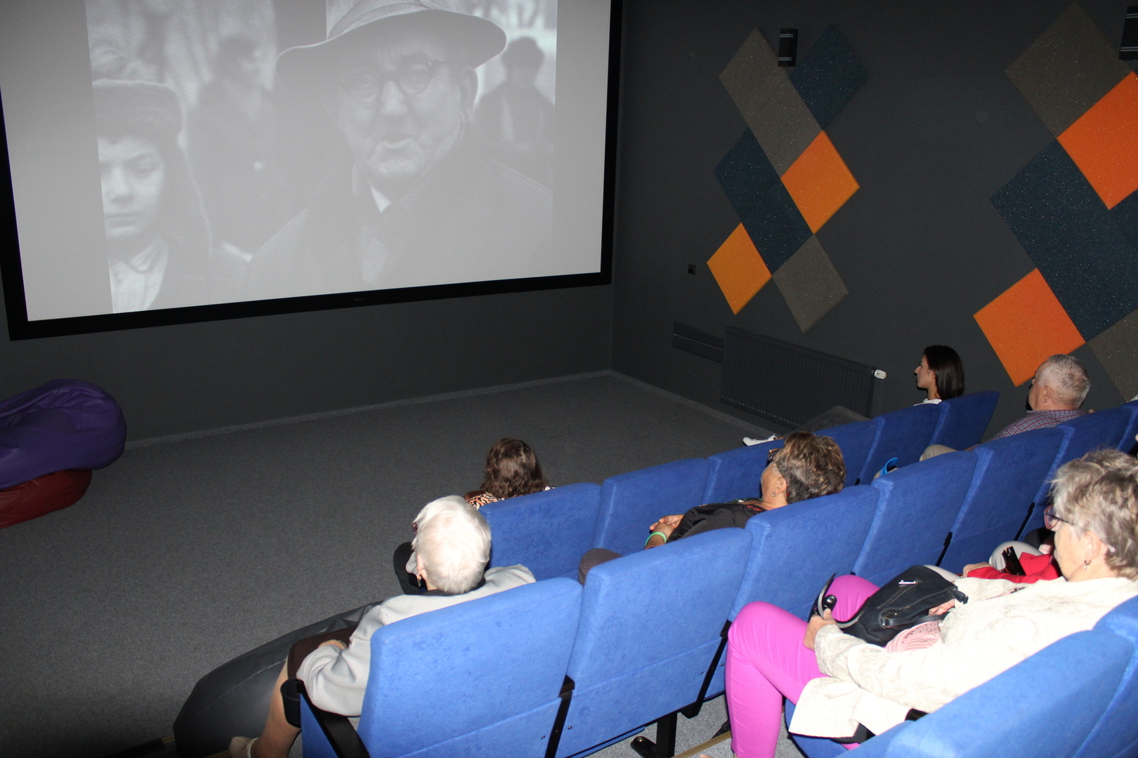 Zaczęliśmy od obejrzenia krótkiego reportażu pt. „Odzyskanie praw miejskich – materiał sprzed 50 lat nakręcony w Sompolnie”. Seniorzy mogli przypomnieć sobie jak wyglądało nasze miasto w 1973r. Wspólnie rozpoznawali miejsca i osoby występujące w filmie – co budziło spore emocje.