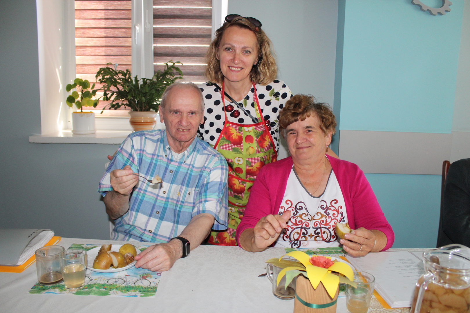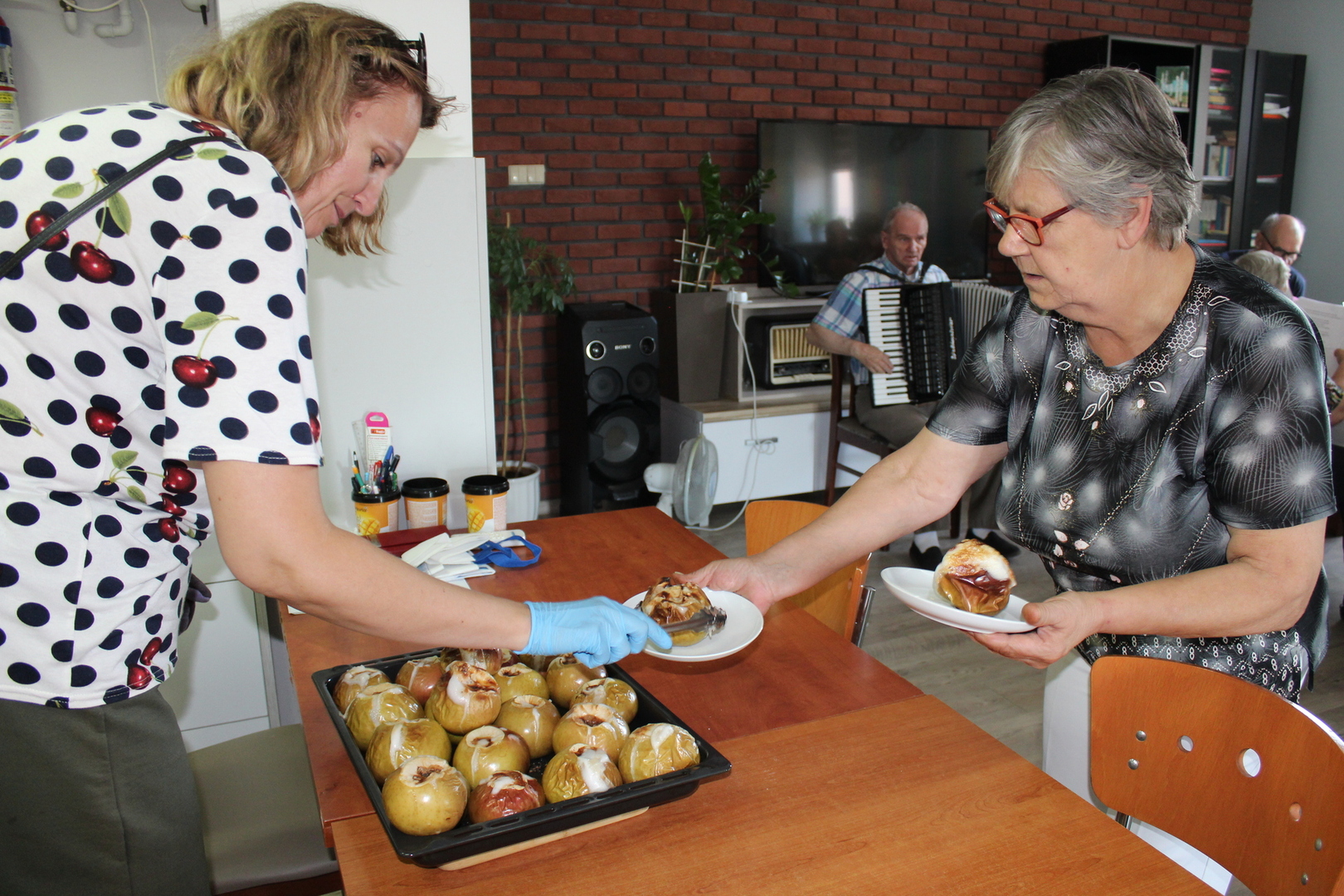 Uczestnicy Domu Dziennego Pobytu dla osób starszych w Sompolnie świętowali w dniu 28 września 2023 roku Światowy Dzień Jabłka. Z tej właśnie okazji na sali rehabilitacyjnej odbywały się tematyczne konkurencje sprawnościowe, w pracowni plastycznej powstawały jabłkowe akwarele, zaś na sali głównej roznosił się niezwykle apetyczny zapach pieczonych jabłek, przyrządzonych w pracowni kulinarnej. Seniorzy poznali wiele ciekawostek na temat tych zdrowych owoców, a wspólne zaśpiewanie piosenki „Czerwone jabłuszko” jeszcze bardziej podkreśliło tematykę tego dnia. Nietypowe święto jabłka wprowadziło do naszego Domu wiele radości!