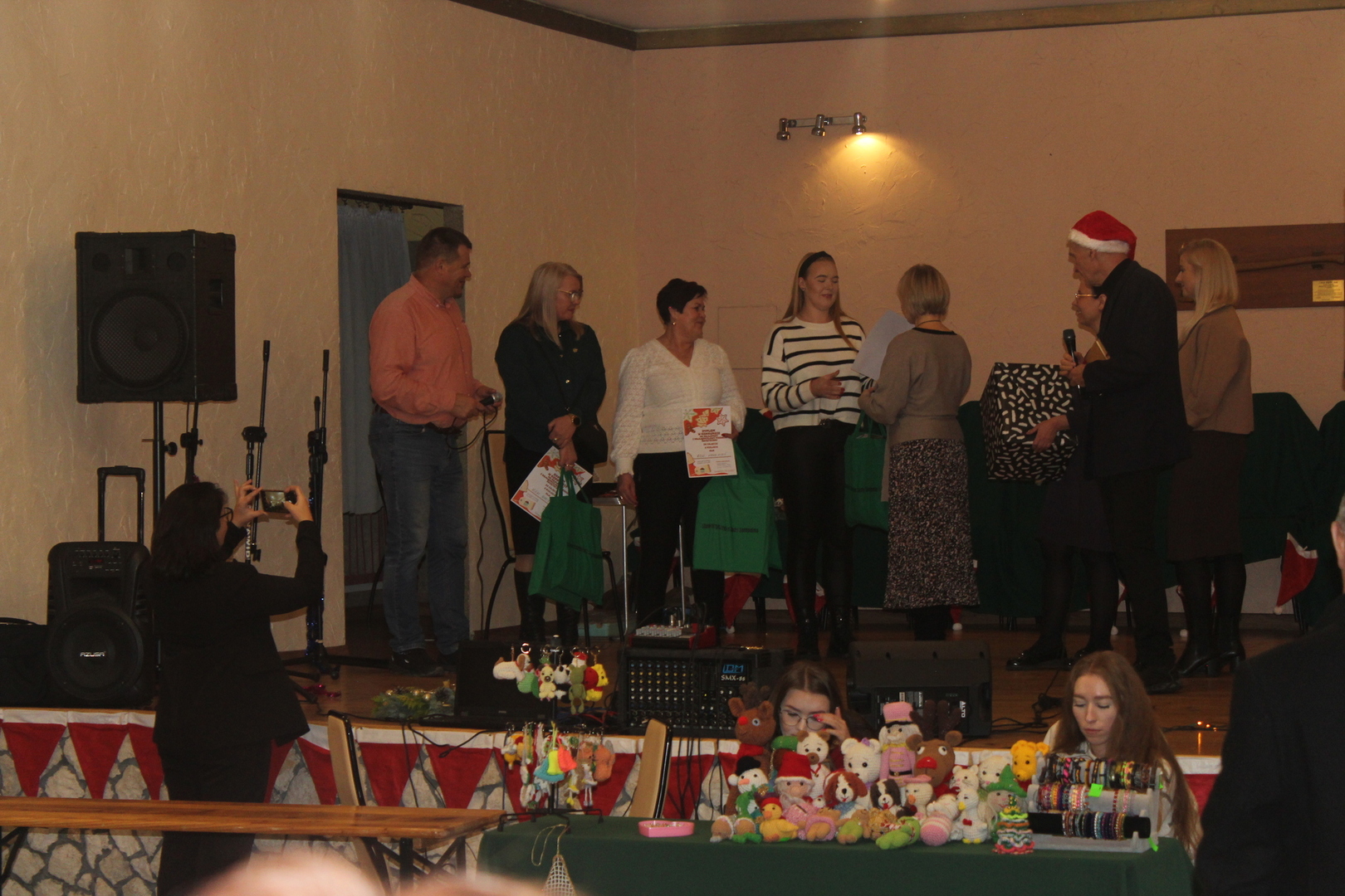 W ubiegłą niedzielę – 10 grudnia, w sali OSP Sompolno, odbył się Kiermasz Bożonarodzeniowy. Podczas jego trwania można było nabyć różnorodne wyroby rękodzielnicze, świąteczne dekoracje i smakołyki. Jak co roku, pośród wielu wystawców, swoje wyroby oferowali również uczestnicy Domu Dziennego Pobytu dla Osób Starszych w Sompolnie. Specjalnie na tą okazję seniorzy przygotowali różnego rodzaju choinki, wianki, bombki, stroiki, anioły z makramy i pudełka upominkowe. Podczas tego spotkana w iście świątecznej atmosferze, z wielkim zaangażowaniem, prezentowali się też na scenie mali artyści ze szkół w Lubstowie, Mąkolnie i Sompolnie. W trakcie imprezy rozstrzygnięty został również konkurs na najsmaczniejszy i najładniejszy piernik, a zwieńczeniem spotkania był koncert zespołu Effatha Chwalborzyce. Za sprawą kolorów, świateł, korzennych zapachów i przyjemnej muzyki, Sompoleński Kiermasz Bożonarodzeniowy doskonale wprowadził nas w klimat zbliżających się świąt.