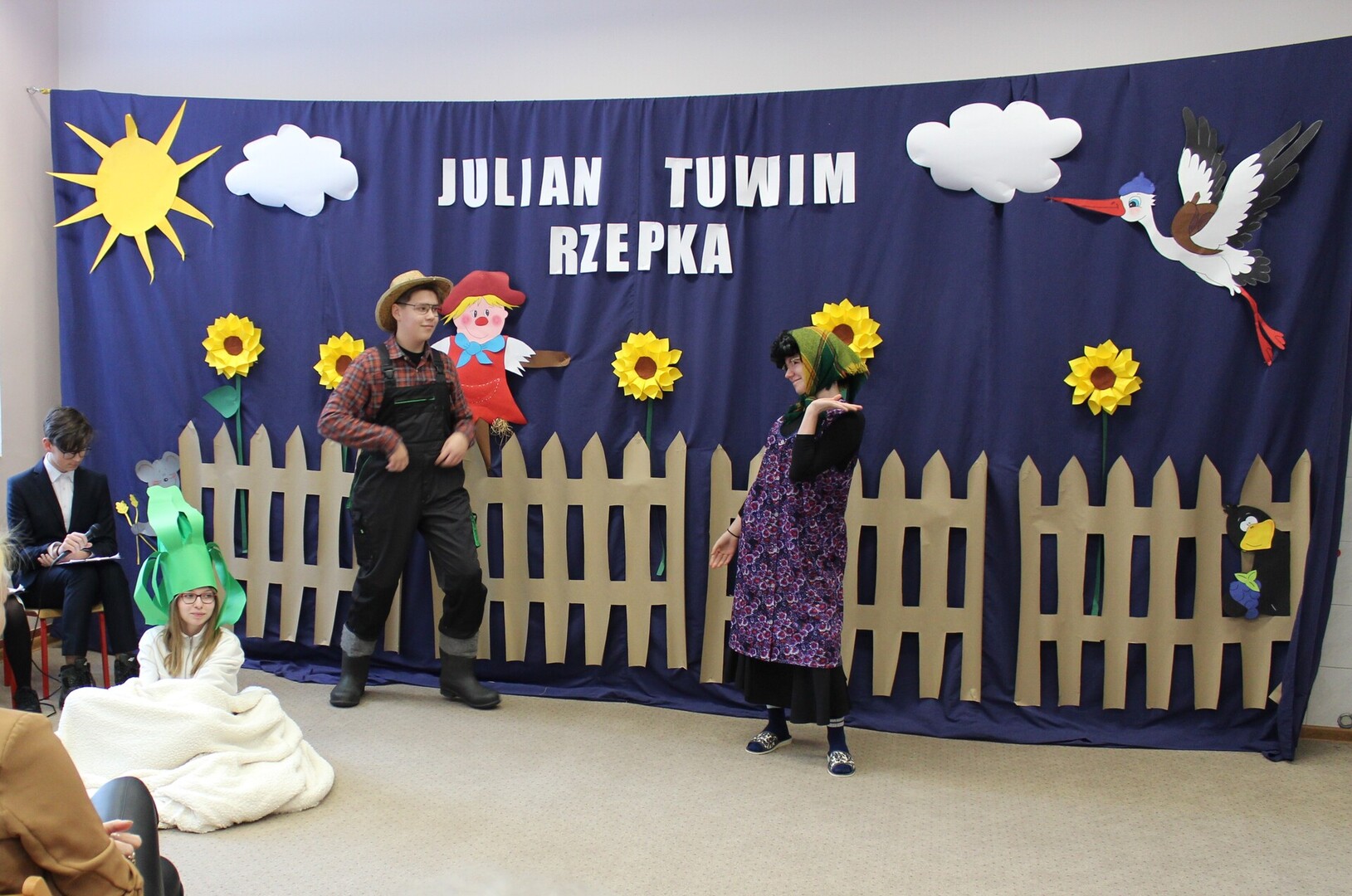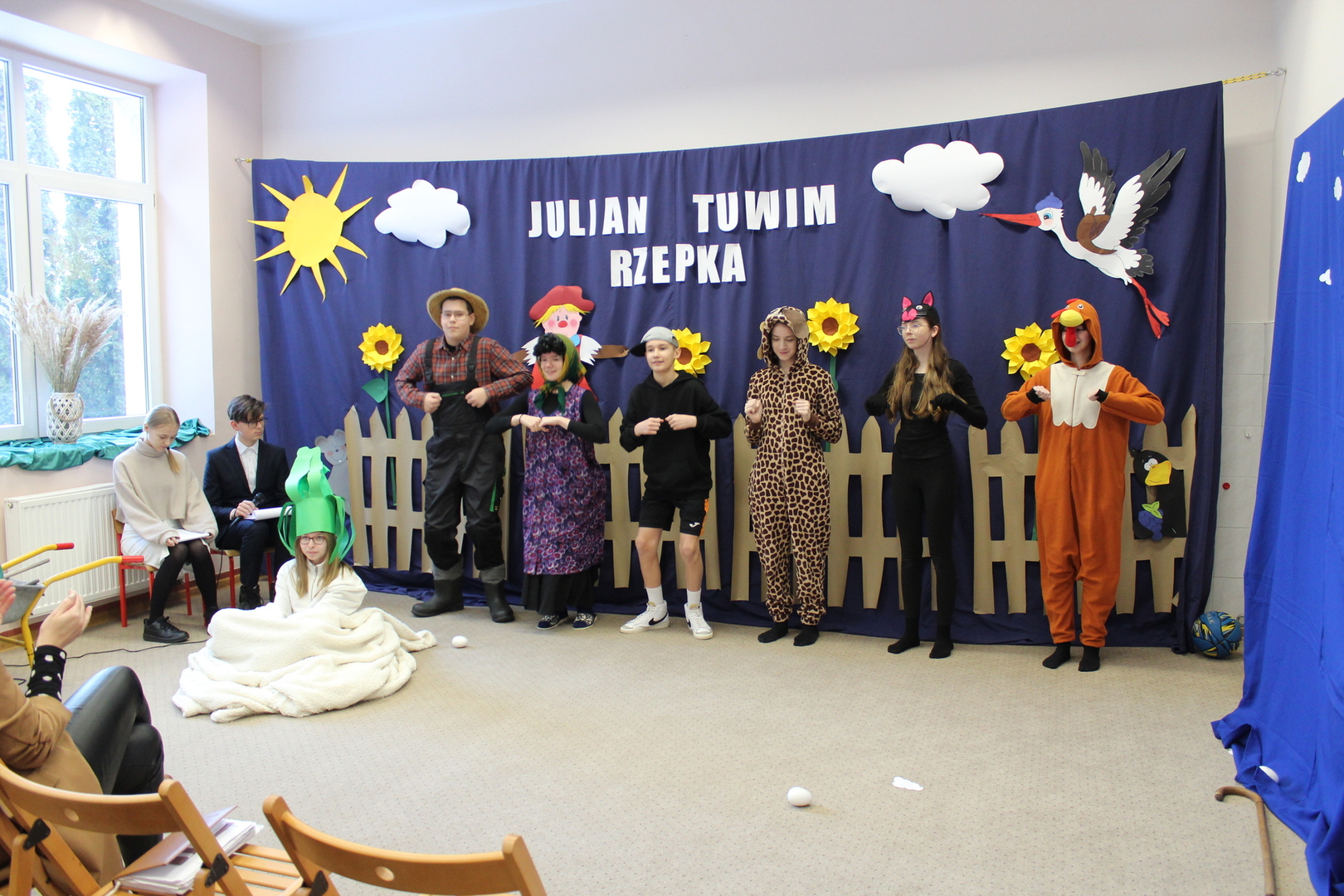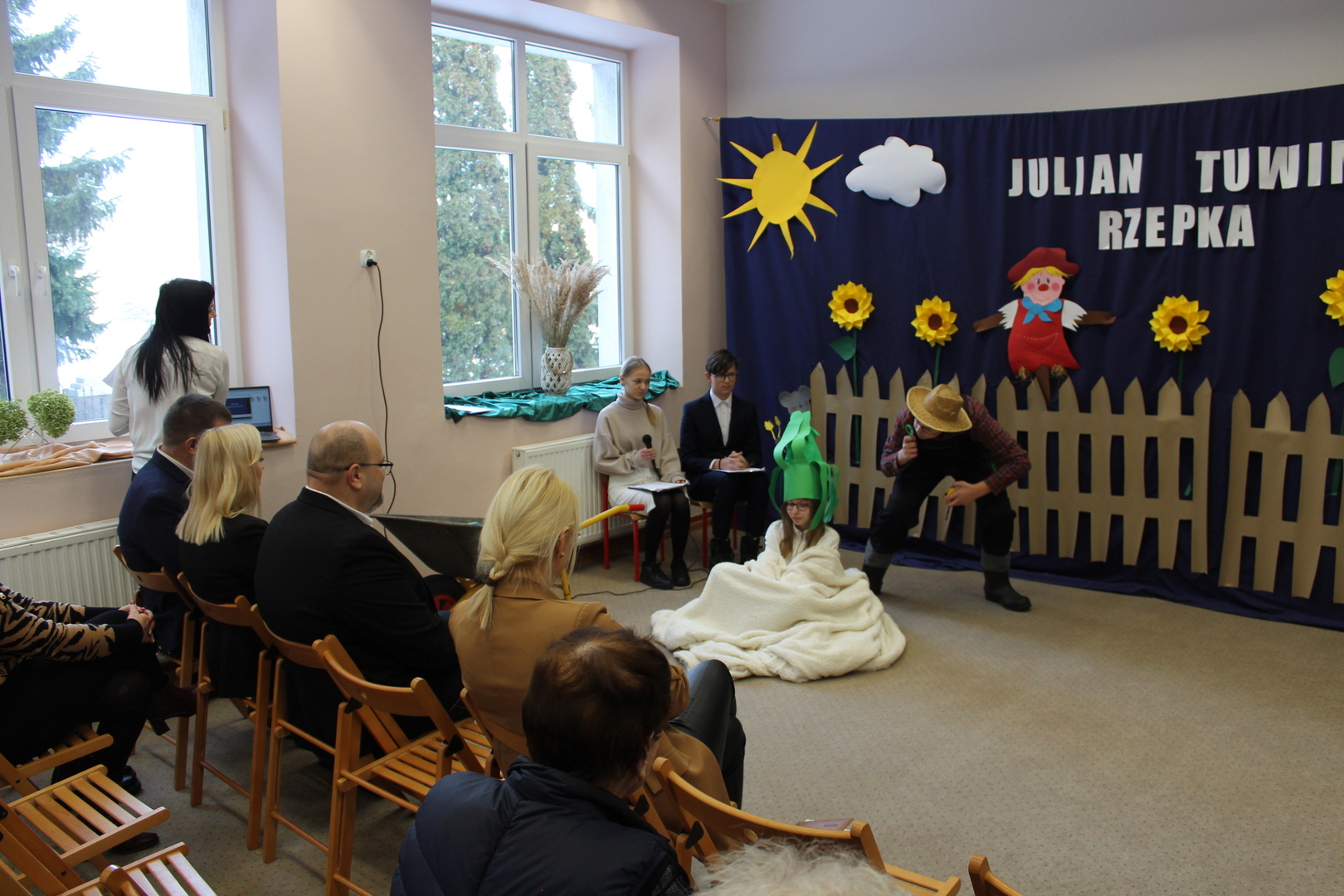 W dniu 16 stycznia 2024r. Szkolne Koło Wolontariatu działające w Zespole Szkolno – Przedszkolnym im. Pierwszej Kadrowej w Mąkolnie, zorganizowało niespodziankę z okazji Dnia Babci i Dziadka. Młodzież zaprezentowała uczestnikom Domu Dziennego Pobytu dla Osób Starszych w Sompolnie oraz własnym babciom i dziadkom przedstawienie teatralne pt. „Rzepka”, autorstwa Juliana Tuwima. Gośćmi na spotkaniu byli także Pan Roman Bednarek – Burmistrz Miasta Sompolna, Pani Katarzyna Janicka – Dyrektor Miejsko – Gminnej Biblioteki Publicznej w Sompolnie, Pan Tomasz Majewski – Dyrektor Miejsko – Gminnego Ośrodka Pomocy Społecznej w Sompolnie, oraz pracownicy szkoły. Zebrani z wielkim entuzjazmem oglądali przedstawienie podziwiając grę aktorską tych młodych ludzi. Ciekawe stroje, jakie mieli na sobie aktorzy sprawiały, że publiczność z zainteresowaniem wypatrywała kolejnych postaci. Należy wspomnieć także o świetnie dobranej muzyce, która towarzyszyła kolejnym osobom wkraczającym na scenę, bo trzeba przyznać, że wprawiała wszystkich w świetny nastrój. Publiczność nie szczędziła gromkich braw! Seniorzy z pełną aprobatą podpisują się pod słowami Pana Romana Bednarka: „To nie była tylko „Rzepka”… To była AŻ „RZEPKA”! Pięknie dziękujemy za zaproszenie.