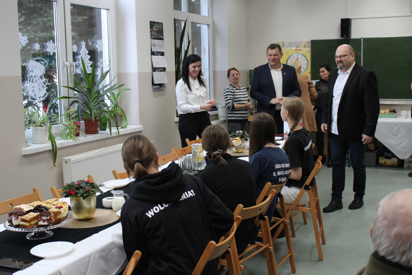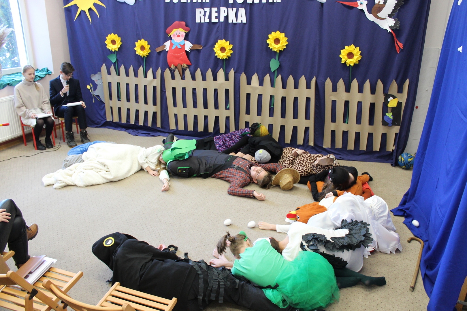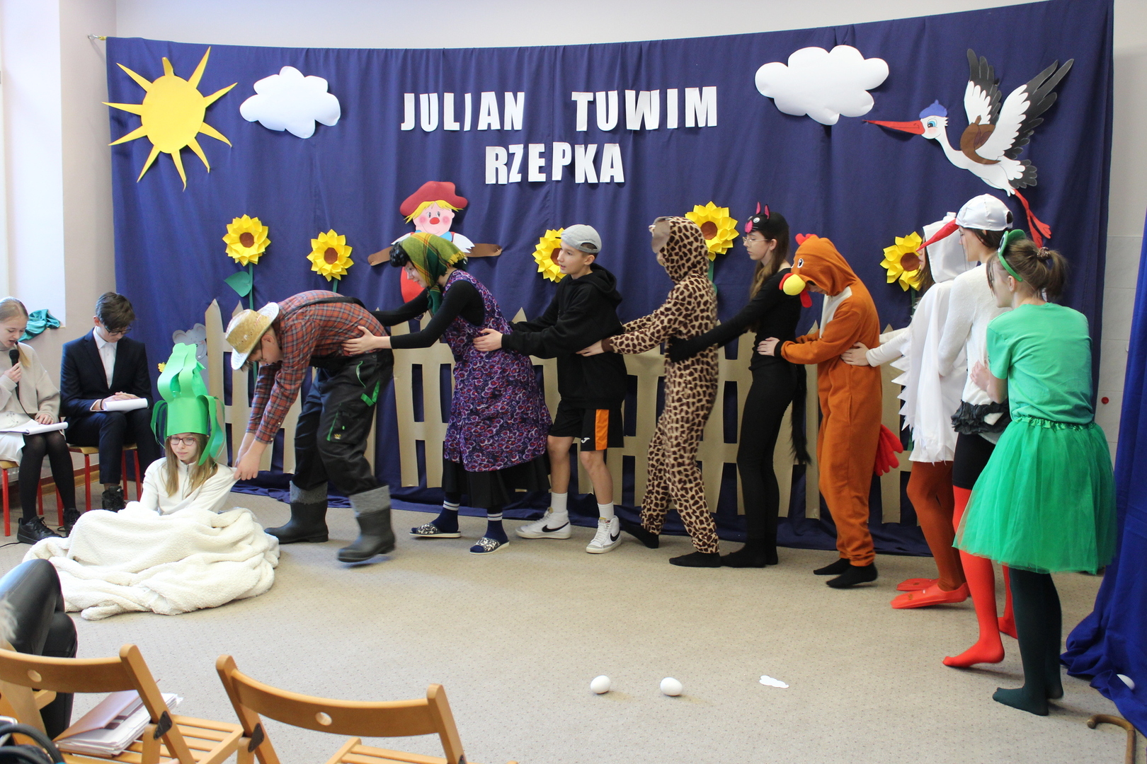 W dniu 16 stycznia 2024r. Szkolne Koło Wolontariatu działające w Zespole Szkolno – Przedszkolnym im. Pierwszej Kadrowej w Mąkolnie, zorganizowało niespodziankę z okazji Dnia Babci i Dziadka. Młodzież zaprezentowała uczestnikom Domu Dziennego Pobytu dla Osób Starszych w Sompolnie oraz własnym babciom i dziadkom przedstawienie teatralne pt. „Rzepka”, autorstwa Juliana Tuwima. Gośćmi na spotkaniu byli także Pan Roman Bednarek – Burmistrz Miasta Sompolna, Pani Katarzyna Janicka – Dyrektor Miejsko – Gminnej Biblioteki Publicznej w Sompolnie, Pan Tomasz Majewski – Dyrektor Miejsko – Gminnego Ośrodka Pomocy Społecznej w Sompolnie, oraz pracownicy szkoły. Zebrani z wielkim entuzjazmem oglądali przedstawienie podziwiając grę aktorską tych młodych ludzi. Ciekawe stroje, jakie mieli na sobie aktorzy sprawiały, że publiczność z zainteresowaniem wypatrywała kolejnych postaci. Należy wspomnieć także o świetnie dobranej muzyce, która towarzyszyła kolejnym osobom wkraczającym na scenę, bo trzeba przyznać, że wprawiała wszystkich w świetny nastrój. Publiczność nie szczędziła gromkich braw! Seniorzy z pełną aprobatą podpisują się pod słowami Pana Romana Bednarka: „To nie była tylko „Rzepka”… To była AŻ „RZEPKA”! Pięknie dziękujemy za zaproszenie.