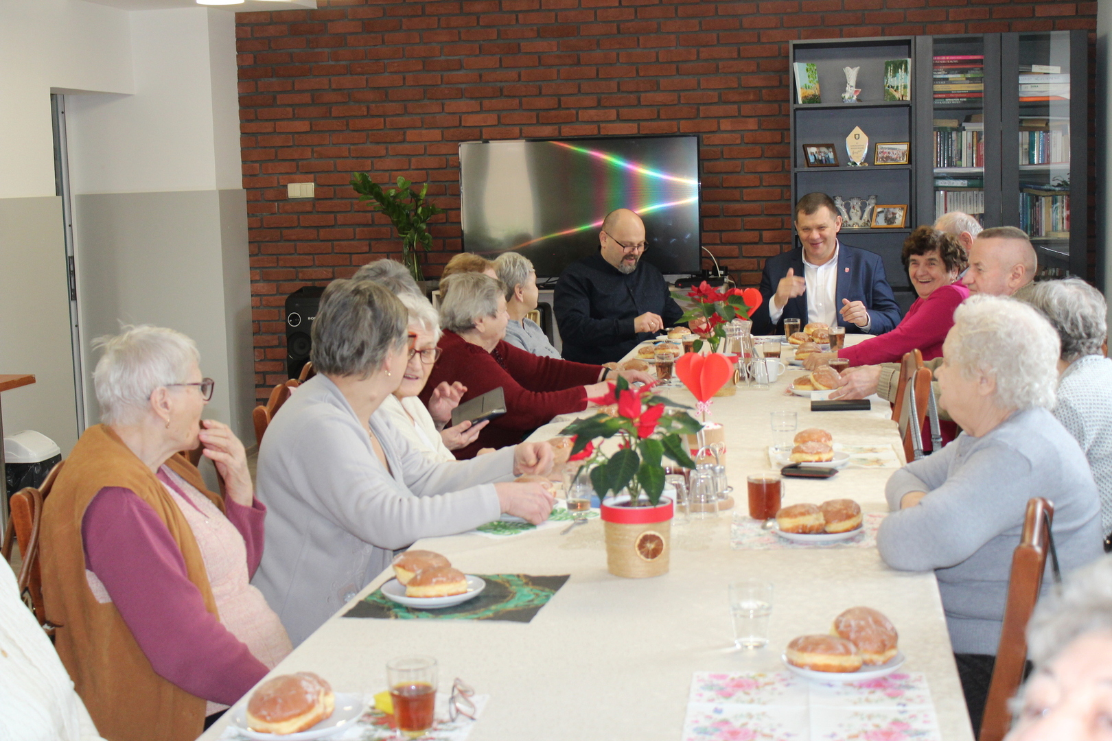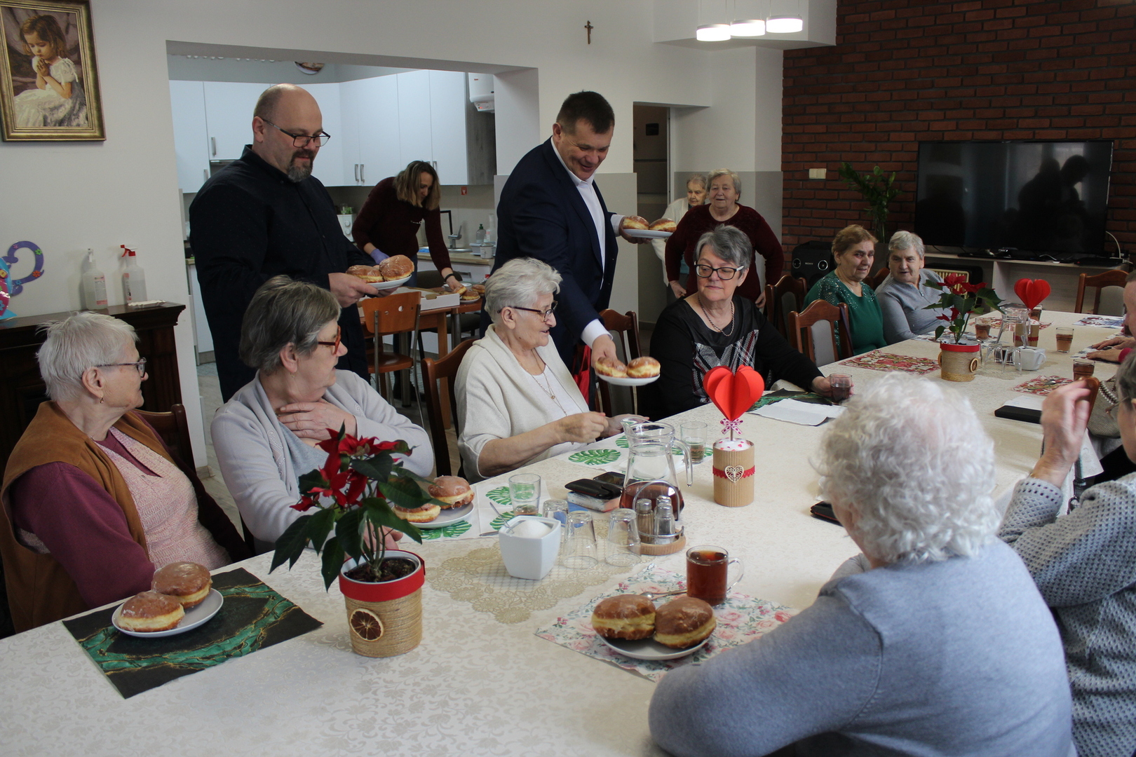 Tłusty Czwartek – to wyjątkowy dzień, w trakcie którego kalorie nie mają znaczenia. Z tej właśnie okazji ósmego dnia lutego uczestników Domu Dziennego Pobytu dla Osób Starszych w Sompolnie odwiedzili Pan Roman Bednarek – Burmistrz Miasta Sompolna oraz Pan Tomasz Majewski – Dyrektor Miejsko – Gminnego Ośrodka Pomocy Społecznej w Sompolnie. Przyszli oni do seniorów obficie zaopatrzeni w tradycyjne pączki. Uczestnicy DDP byli mile zaskoczeni i zaprosili gości do stołu, aby wspólnie celebrować ten najsłodszy dzień w roku.