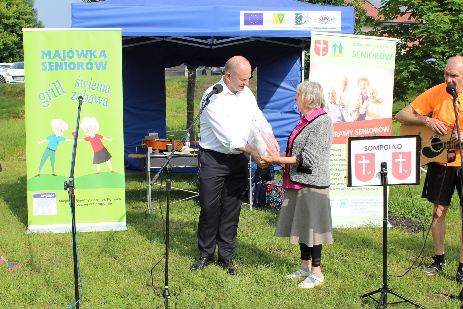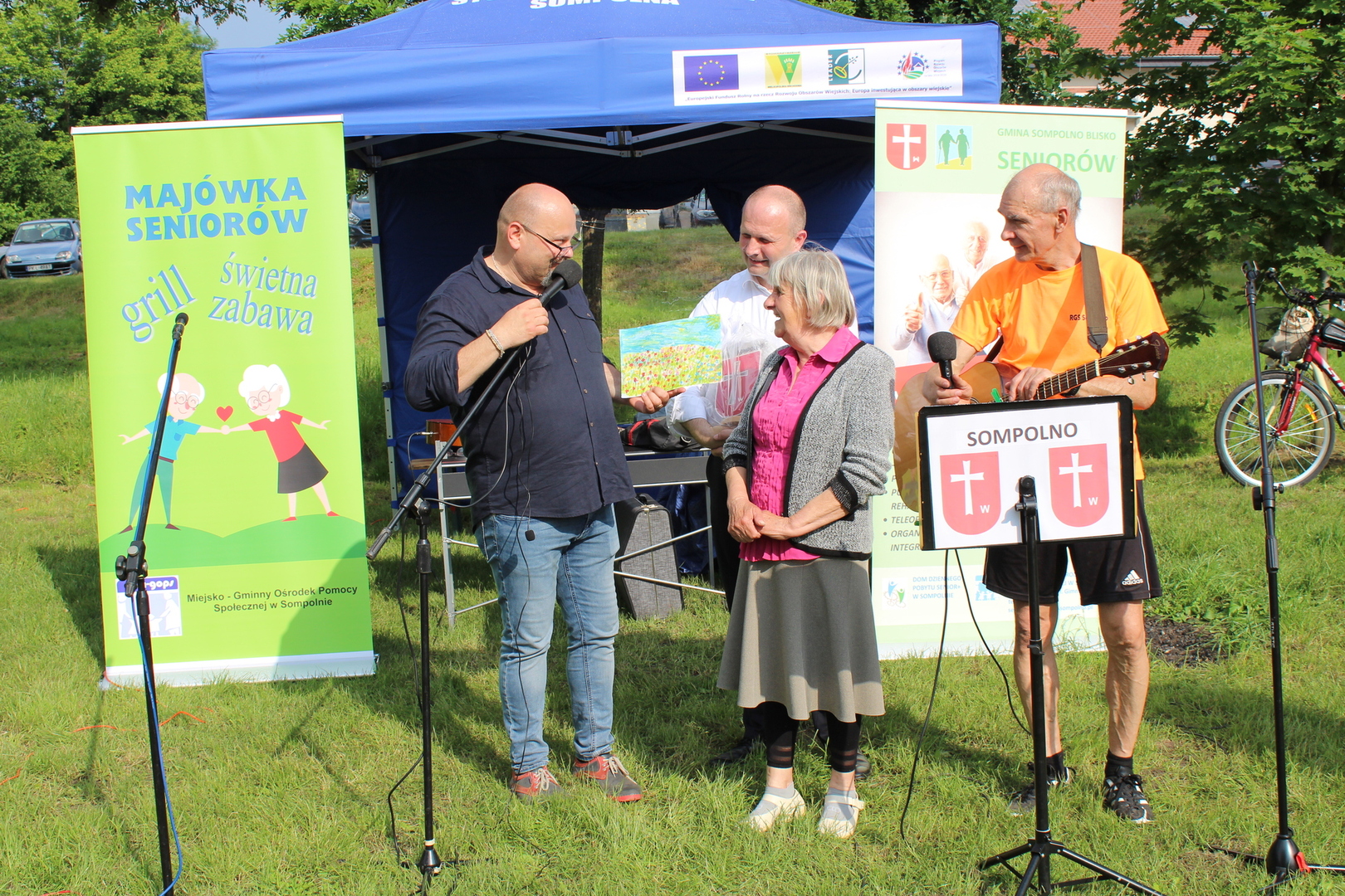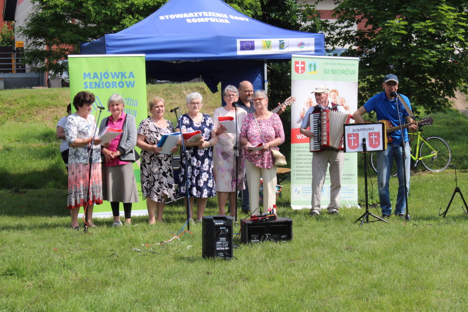 Seniorzy bawili się w parku przy ul. 11 Listopada. Program Majówki zawierał szereg atrakcji dla gości w wieku 60+. Począwszy od występu zespołu „Wiecznie Młodzi” z Domu Dziennego Pobytu Senior+ w Sompolnie, przez pokazowy mecz piłki siatkowej , po zabawy ruchowe, turniej bocce oraz konkurs plastyczny.