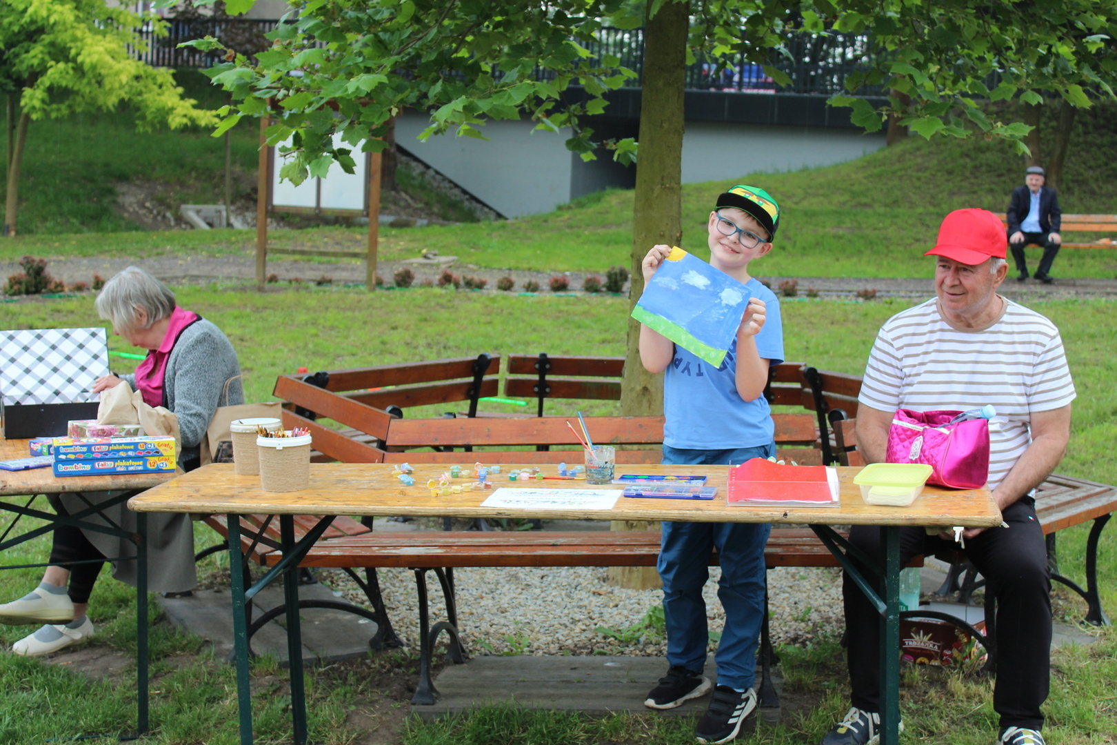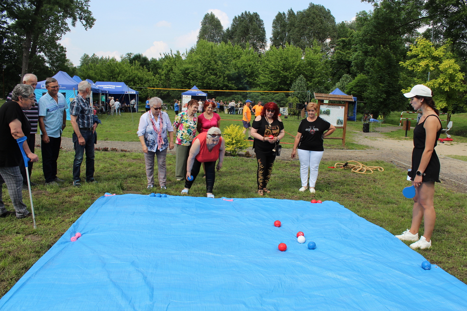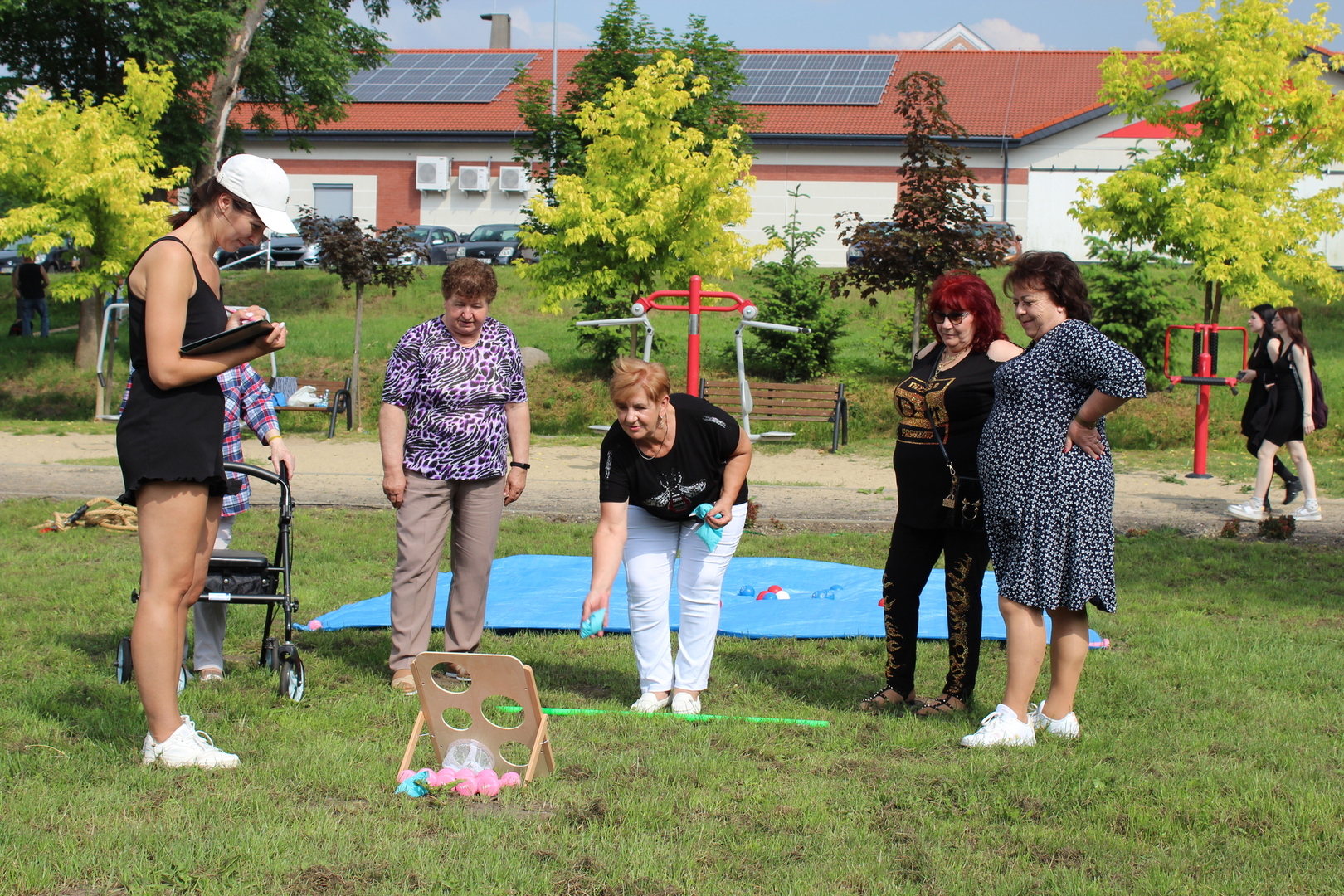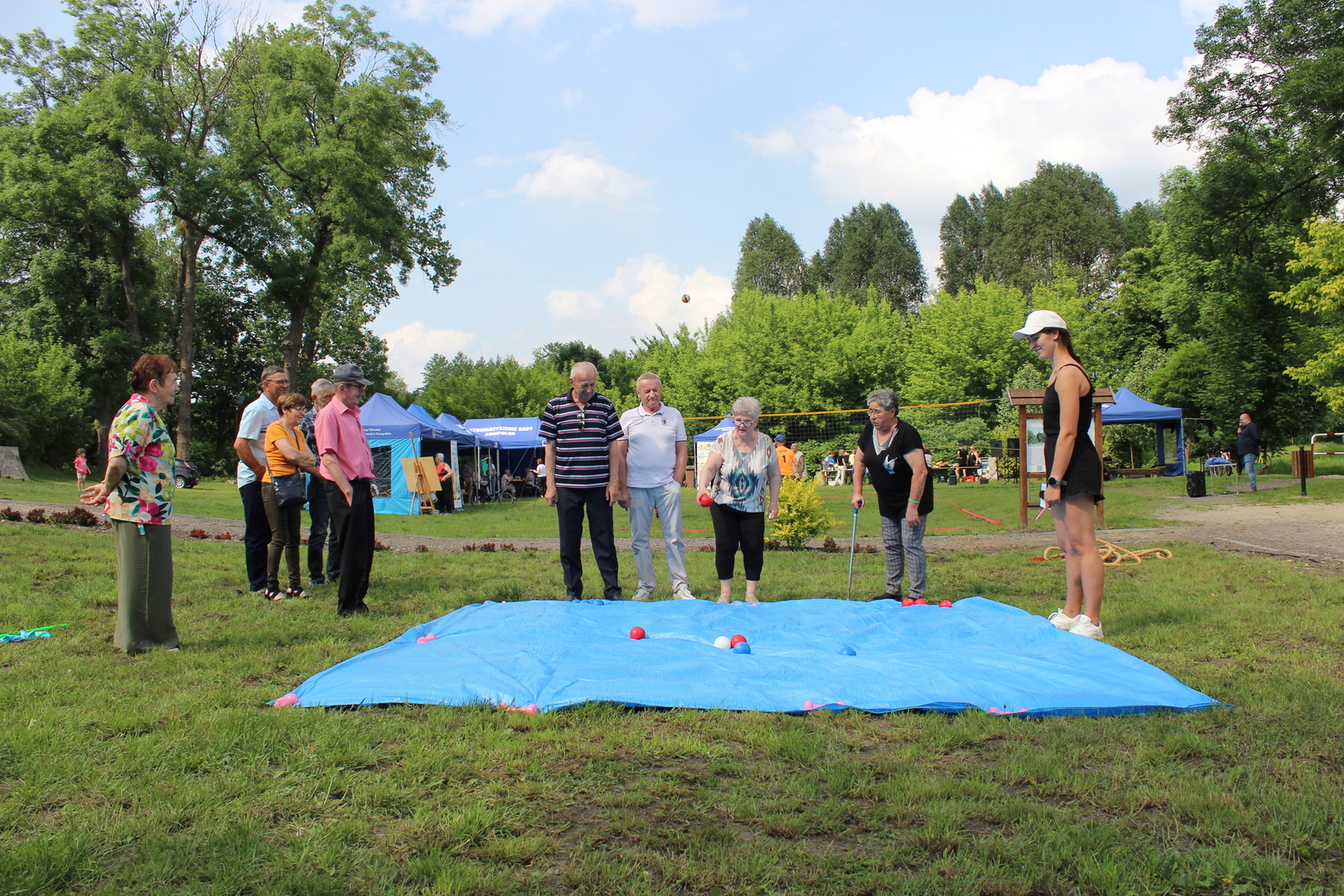 Seniorzy bawili się w parku przy ul. 11 Listopada. Program Majówki zawierał szereg atrakcji dla gości w wieku 60+. Począwszy od występu zespołu „Wiecznie Młodzi” z Domu Dziennego Pobytu Senior+ w Sompolnie, przez pokazowy mecz piłki siatkowej , po zabawy ruchowe, turniej bocce oraz konkurs plastyczny.