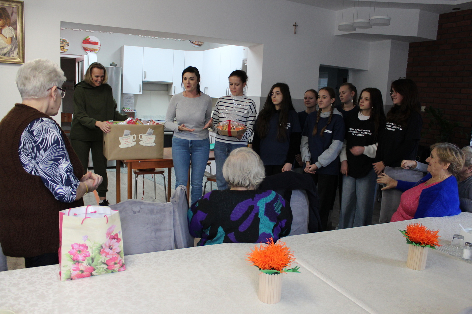 Właśnie taka idea przyświecała wolontariuszom z Zespołu Szkolno – Przedszkolnego w Mąkolnie, którzy wraz z opiekunami przekazali herbaty zebrane w szkolnej zbiórce, seniorom z Domu Dziennego Pobytu dla Osób Starszych w Sompolnie. W trakcie spotkania, które odbyło się w dniu 15.11.2024r. (piątek), uczniowie mieli okazję zobaczyć jak placówka funkcjonuje na co dzień i czym zajmują się nasi uczestnicy podczas zajęć terapeutycznych.