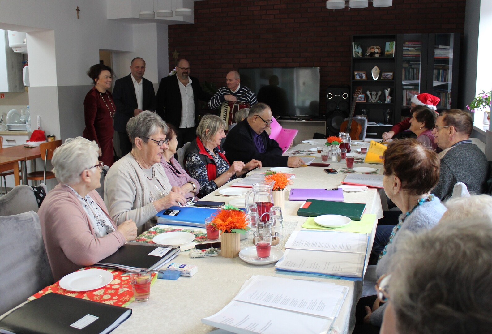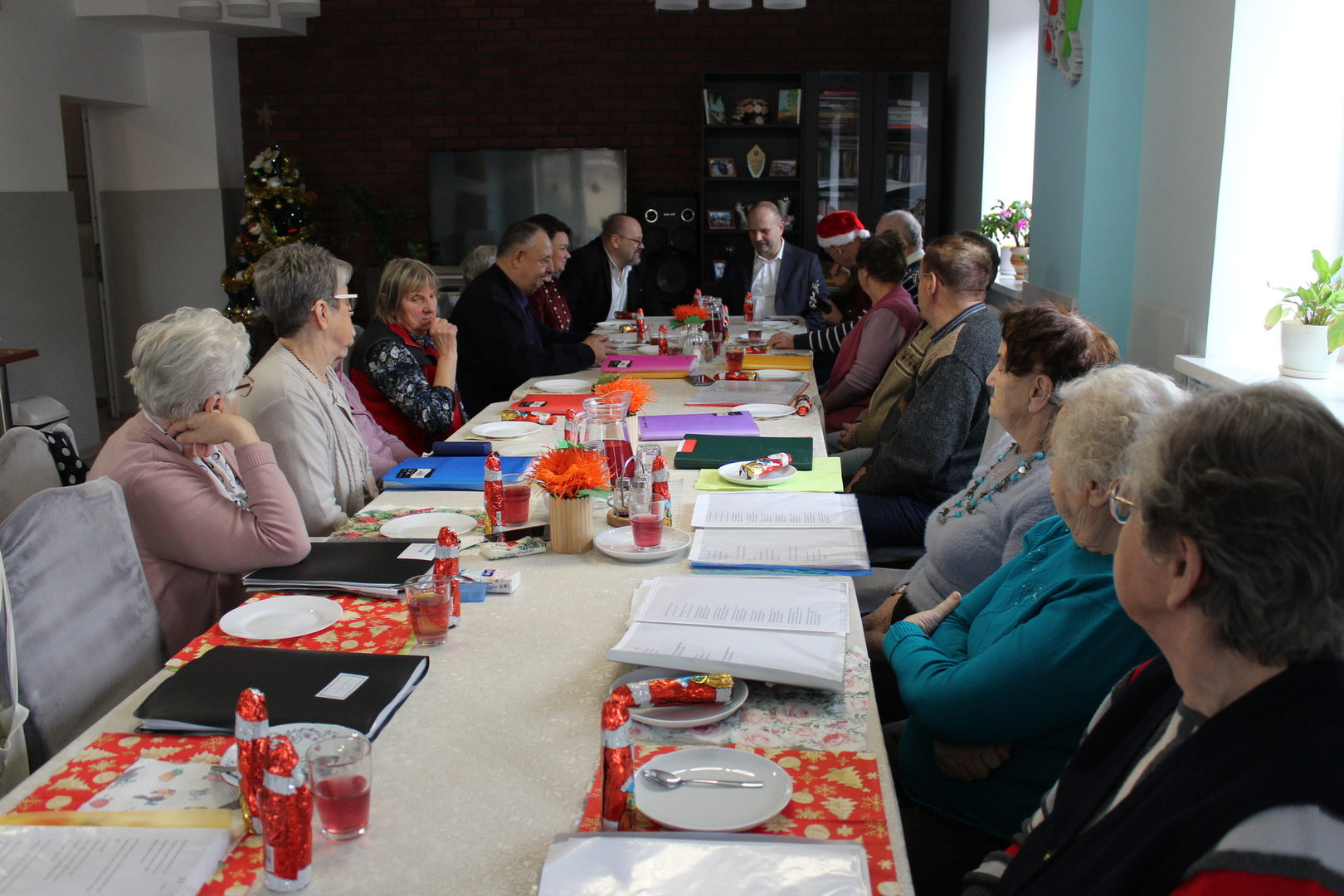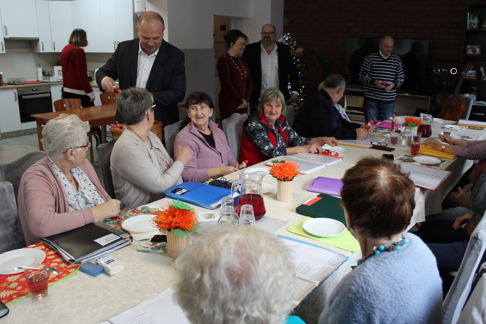 Z okazji Mikołajek, uczestników Domu Dziennego Pobytu Senior+ w Sompolnie odwiedzili: Pan Waldemar Marciniak – Burmistrz Miasta Sompolna oraz Pani Aneta Niestrawska – Sekretarz Gminy. Spotkanie, które odbyło się również z udziałem Pana Tomasza Majewskiego – Dyrektora Miejsko – Gminnego Ośrodka Pomocy Społecznej w Sompolnie oraz Pana Andrzeja Prętnickiego, wniosło dużo radości w serca seniorów. Podczas wizyty Pan Burmistrz wręczył każdemu z obecnych symboliczny, słodki upominek. Nie zabrakło również wspólnych rozmów, śpiewów i wyjątkowych chwil, które na długo pozostaną w pamięci uczestników. Dzięki takim inicjatywom seniorzy czują się zauważeni i docenieni.
