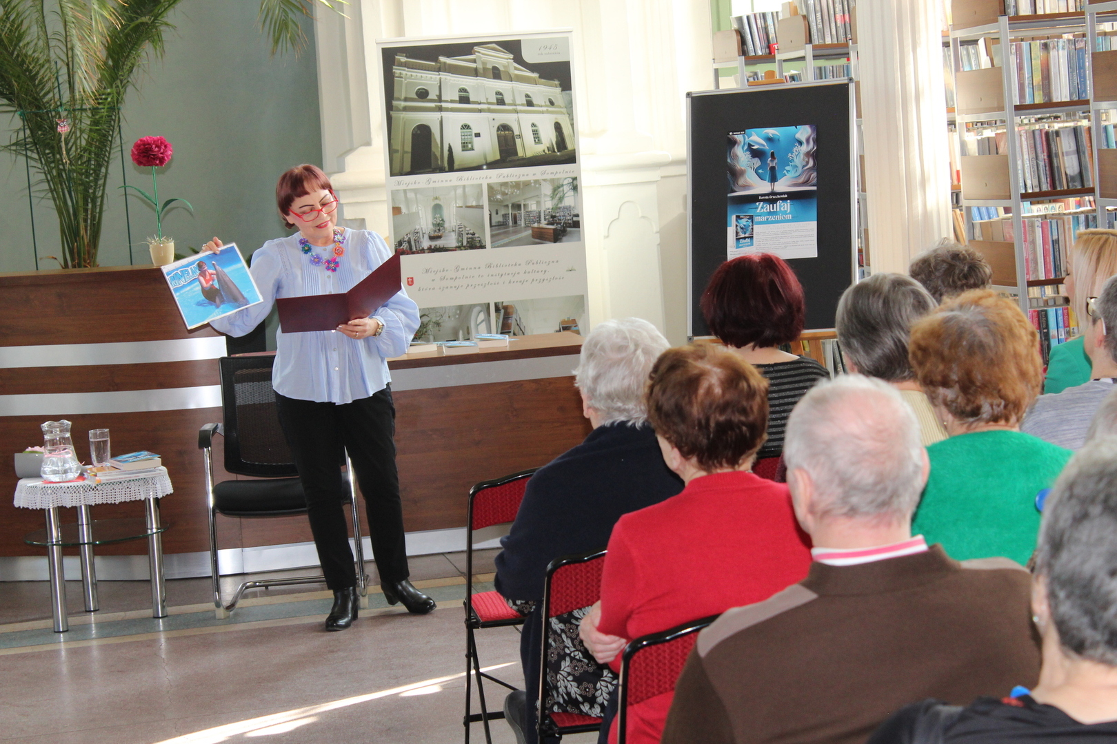 W dniu dzisiejszym tj.: 04.03.2025r., seniorzy z Domu Dziennego Pobytu dla Osób Starszych w Sompolnie mieli okazję uczestniczyć w spotkaniu autorskim z Panią Dorotą Grzechowiak. Odbyło się ono w Miejsko – Gminnej Bibliotece Publicznej w Sompolnie, a pisarka promowała na nim swoją ostatnią książkę pt. „Zaufaj marzeniom”.
