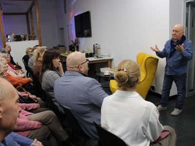 Autor podczas spotkania opowiadał o swojej twórczości, inspiracjach oraz o procesie powstawania najnowszych książek. Z dużą swobodą dzielił się anegdotami ze swojego życia, podkreślając jak ważną rolę w jego pisaniu odgrywa obserwacja otoczenia i rozmowy z ludźmi. Uczestnicy mieli okazję nie tylko wysłuchać ciekawych historii, ale także zadać pytania dotyczące jego pracy, bohaterów literackich oraz planów na przyszłość. Nie zabrakło również chwili na rozmowy indywidualne, wymianę wrażeń oraz możliwość zdobycia dedykacji i autografu.
