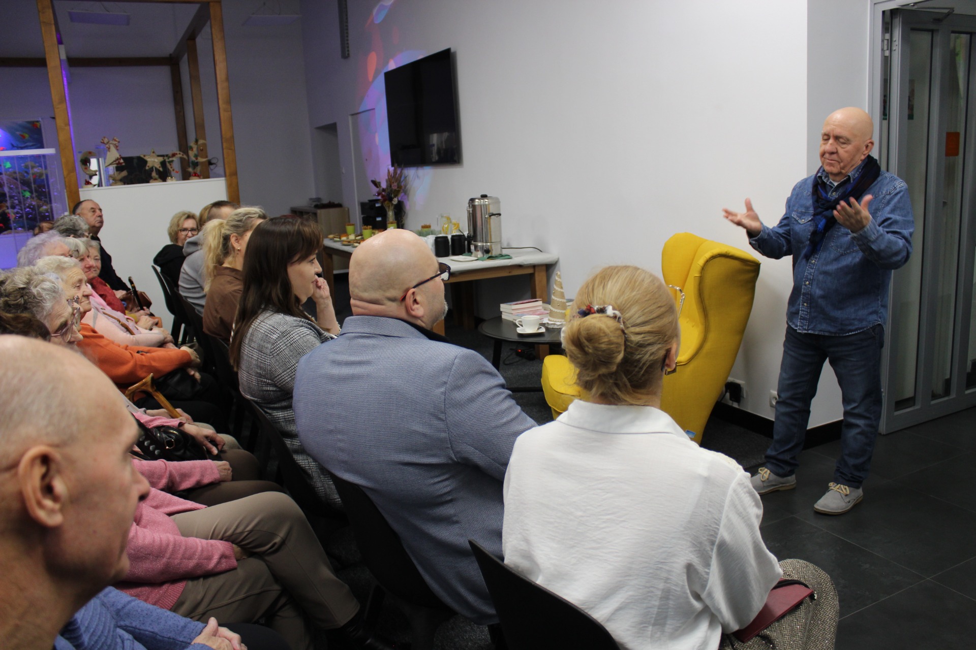 Dziś, tj. 20.11.2025r w Dziennym Centrum Wsparcia w Sompolnie odbyło się spotkanie autorskie ze Stanisławem Pigułą, pisarzem znanym z poruszających opowiadań i książek. Wydarzenie zgromadziło uczestników Dziennego Centrum Wsparcia, Seniorów z Domu Dziennego Pobytu dla Osób Starszych w Sompolnie, mieszkańców miasta oraz miłośników literatury.
